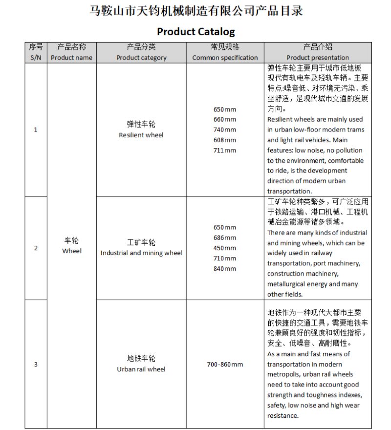 MTJ si impegna a fornire prodotti e soluzioni di alta qualità per l'industria ferroviaria globale. La nostra gamma di prodotti comprende ruote, assi, sale montate, pneumatici per locomotive, anelli, rotaie in acciaio, cuscinetti per veicoli ferroviari, carrelli, vagoni ferroviari e pezzi di ricambio. Con capacità avanzate di ricerca e sviluppo e un rigoroso controllo di qualità, garantiamo che ogni prodotto soddisfi gli standard internazionali, supportando il trasporto ferroviario in tutto il mondo.